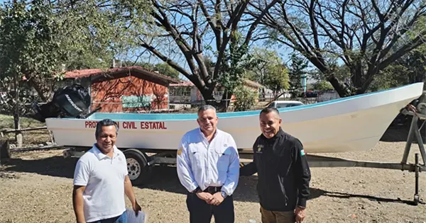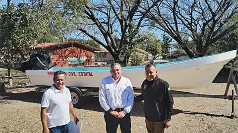 Durante la tarde, un día antes de comenzar el operativo de Semana Santa, Mauricio Ordaz entregó al alcalde David Medina Salazar una lancha con motor de 115 caballos de fuerza y con una capacidad de transportar para 30 personas.