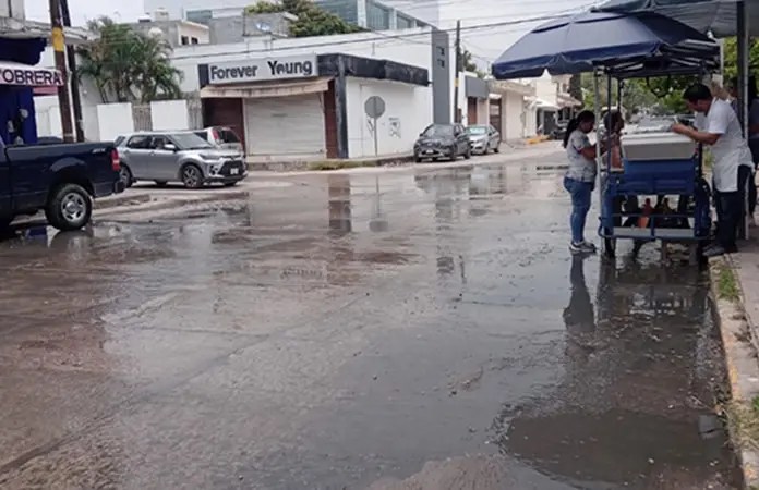 El agua sale a chorros a la mitad de la calle Tamaulipas, entre Bocanegra y Manuel José Othón y se desliza por la ligera pendiente hasta Bocanegra, haciendo un charco de pura inmundicia frente a la puerta esquinada del plantel, en donde los paterfamilias dejan o recogen a sus hijos.