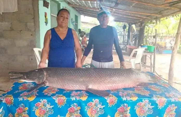 Ayer, un espécimen de casi metro y medio entró al patio de una casa y los vecinos lo atraparon y después lo exhibieron como una de las bondades que arrastró el Tampaón en esta temporada de lluvias.