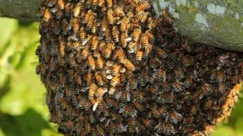 Matehuala.- Nuevo ataque de abejas puso en peligro a familia en un domicilio de la calle Fresnos, al lugar acudieron elementos del Cuerpo de Bomberos quienes resguardaron a la familia y a su mascota para evitar que los picaran, luego se comunicaron con un apicultor para que atrapara los insectos.