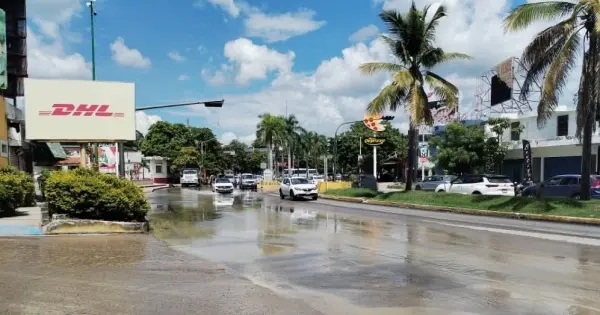 Una tubería de las que la Dapas llama "principales" se rompió justo a unos metros de la salida de la calle Hidalgo, formando un pequeño río en la vía de circulación rápida y, por lo tanto, hubo una interrupción de suministro para que los empleados del organismo pudieran trabajar.