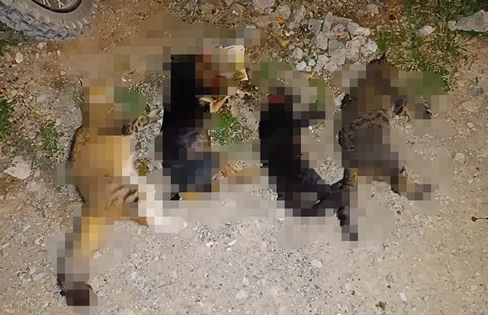 La noche de este jueves 16 de abril, en la calle Andrés Quintana Roo, entre avenida Bicentenario y José María Morelos aparecieron tres gatos y un perro Chihuahua muertos.
