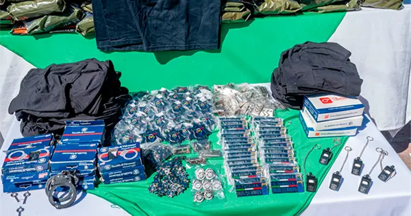 A los elementos se les entregó camisola, pantalón, botas, gorra, equipo táctico, zapato liso, gorra kepi, uniforme táctico.
