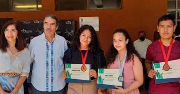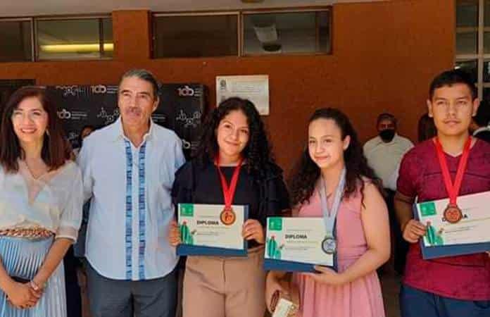 Los alumnos que lograron sacar los primeros lugares son: Brenda Camacho Miranda, premiada con presea de plata al segundo lugar, Ana Isabel de León Tristán acreedora del tercer lugar y medalla de bronce, así como Carlos Alexander Serrato Amaya, quien obtuvo una segunda medalla de bronce para la tripleta de jóvenes, de manos del rector de la UASLP, Alejandro Javier Zermeño Guerra.