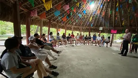 Una veintena de jóvenes de la carrera descrita llegaron hoy a conocer el funcionamiento burocrático y práctico de la dirección de Ecología, con la que hicieron un acuerdo de visita desde el mes de septiembre pasado y entre las actividades de hoy, estuvieron en el paraje de Micos, en donde recibieron una instrucción sobre manejo de recursos y cuidado de medio ambiente.