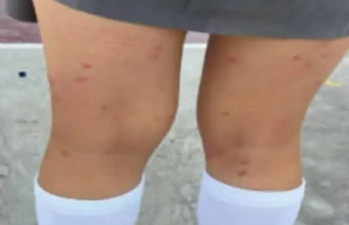 Padres de familia de la escuela ubicada en el fraccionamiento CECyT, compartieron fotografías de la condición en las que quedaron sus hijos e hijas por asistir a la escuela, principalmente en el turno vespertino y en donde se aprecian los brazos, piernas y rostros salpicados de ronchas, provocadas por los piquetes de los mosquitos aedes aegypti, moscos que, dicho sea de paso, transmiten el dengue.