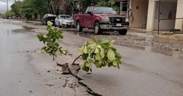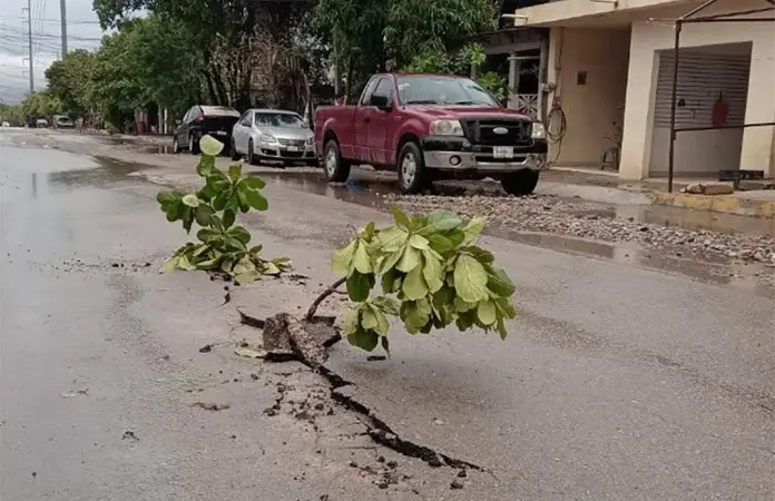 CIUDAD VALLES.- En septiembre hicieron la calle Via Láctea y ya se le levantaron unos lomos, luego de las lluvias. Tiempo récord de ocho meses en buenas condiciones fue lo que duró esta flamante obra municipal.