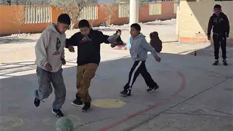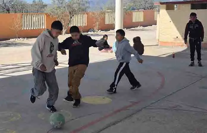Matehuala.- Personal de la Jurisdicción Sanitaria Número II promueve el Mundialito Cívico, una actividad que están realizando en las instituciones educativas para fomentar el deporte y la sana alimentación con los estudiantes, una propuesta del programa "Comunidad Saludable".