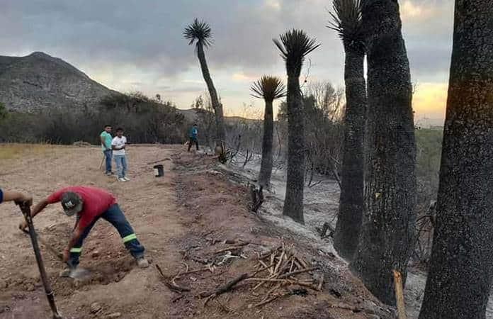 Con palas, talaches y otras herramientas controlaron el fuego que se podría extender