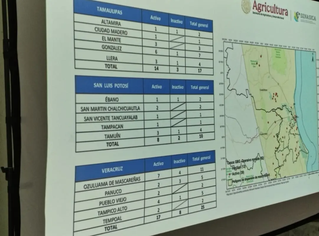 De acuerdo con los datos presentados, la Huasteca Potosina registra 10 casos confirmados, tres más que la semana pasada; Tamaulipas suma 17 y Veracruz 25. Aunque el primer caso se detectó el 26 de diciembre, Ayala Borunda aseguró que el número de infecciones se ha logrado mantener contenido.