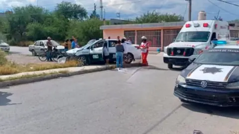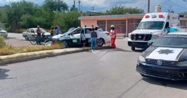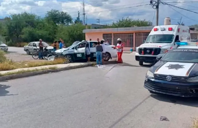 Matehuala.- Se registro un fuerte accidente en la colonia República, donde se impactaron un taxista contra un motociclista dejando dos personas con serias lesiones que fueron trasladados a un hospital por elementos de la Cruz Roja.