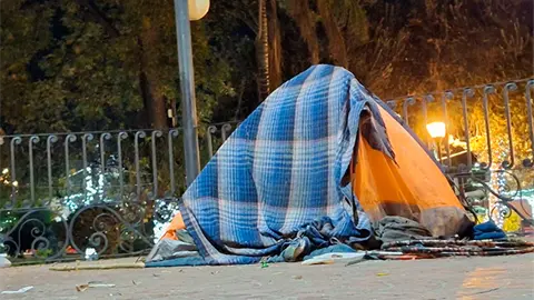 MATEHUALA.- Una persona en situación de calle colocó una casa de campaña en el quiosco del Parque Vicente Guerrero mejor conocido como Parque del Pueblo, agarrando el lugar como "su casa" para dormir, ante esta situación vecinos y transeúntes exigen que sea reubicado en otra parte, ya que luego van los niños y no pueden jugar en el quiosco.