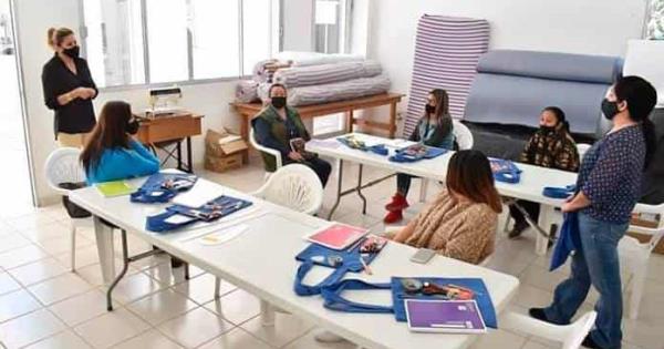 Además de la elaboración de prendas se confeccionan cubrebocas para donarlos a la población que lo requiera; las alumnas estarán recibiendo este curso por parte de la instructora Dora Edith Torres Coello.