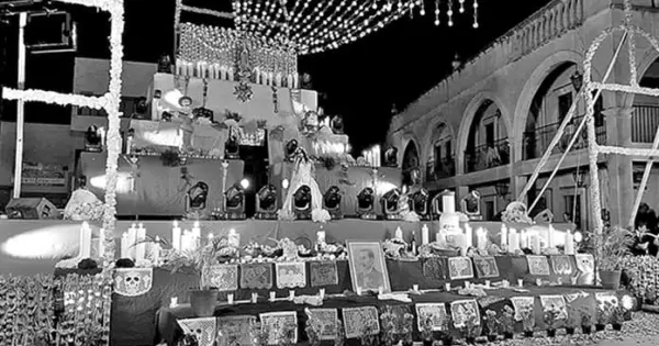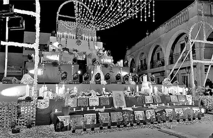 Matehuala.- Fomento Cultural por segundo año instaló el altar de muertos más grande del Altiplano, el cual fue colocado frente a la Plaza de Armas a un costado de la Presidencia Municipal, incluso se celebraron varios eventos culturales.