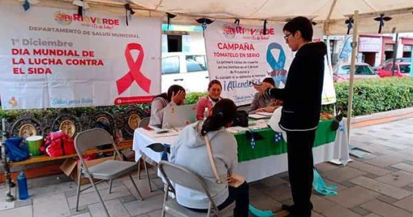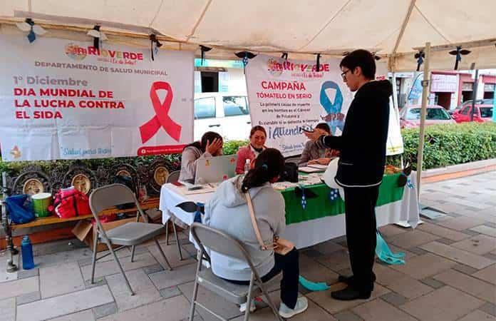 RIOVERDE.- En la plaza principal se instaló un módulo de detección en el que se estarán realizando pruebas rápidas de VIH-Sida y de Sífilis de manera gratuita, por lo que invitan a la población a que se acerque.