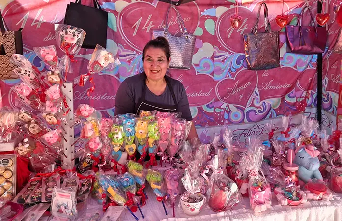 El 14 de febrero es una fecha en la que muchos compran regalos para sus amigos, novias, novios, esposos, esposas y amantes y es una oportunidad para que los comerciantes tengan buenas ventas, en los últimos años se ha llevado a cabo este tianguis.