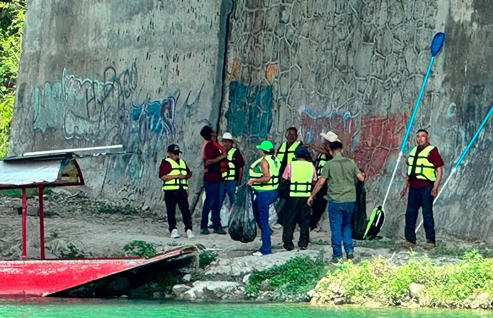 CIUDAD VALLES.- Hubo una limpieza multidisciplinaria entre personal de varias dependencias y departamentos en el Río Valles, como parte de Plan Nacional Hídrico.
