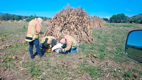 Los sucesos se suscitaron en Potrero, atrás de una gasolinera cuando Darío, de 97 años de edad, realizaba labores agrícolas, de pronto fue atacado por un enjambre de abejas ocasionándole severas lesiones.
