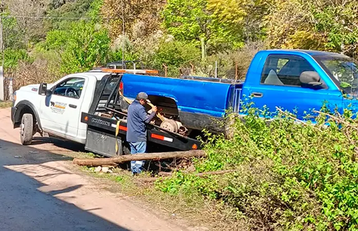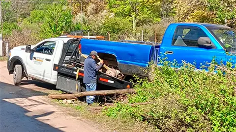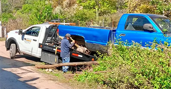 La unidad finalmente fue localizada en el camino a la comunidad El Nacimiento, una camioneta marca Dodge Ram tipo pick up azul, fue encontrada en un predio sin acceso y que estaba desvalijada, con partes que le faltaban.