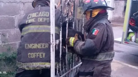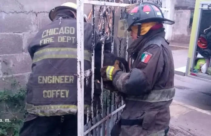 Los hechos ocurrieron la madrugada de este domingo en un domicilio ubicado en la calle Emiliano Zapata en El Ejido de San Marcos, cuando una familia solicitó el apoyo de los tragahumo, porque una mascota quedó atrapada entre los barrotes de un portón al intentar cruzarlos y entrar a la vivienda.