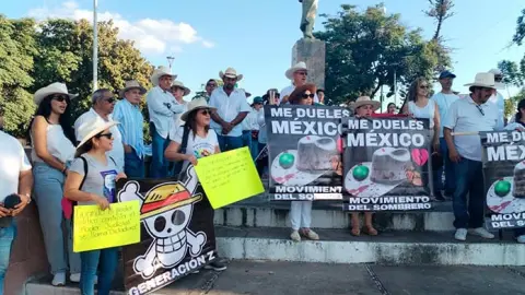 Poco después de las cuatro y media de la tarde, un contingente de personas ataviadas de blanco y con sombrero, a la usanza del símbolo de la Generación Z gritaron consignas contra el Gobierno y recitaron en reclamaciones que "Manzo no murió, el Gobierno lo mató", entre otras cosas contra la administración federal.