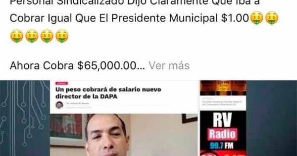 En su cuenta de Facebook, Ballesteros escribió que, cuando presentaron a Marco Antonio Guillén ante el personal sindicalizado lo que se les dijo era que éste cobraría lo mismo que el alcalde: un solo peso de sueldo (la ley impide que no se perciba sueldo como funcionario).