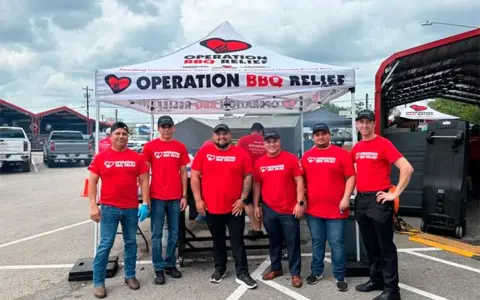 Matehuala.- Manuel Balderas un joven originario de Matehuala que se encuentra trabajando en Estados Unidos junto con otros mexicanos y latinos que trabajan en una empresa de comida brindaron ayuda a los damnificados del desastre de Kervillle, TX, repartiéndoles alimentos tanto a niños, jóvenes, adultos y adultos mayores.