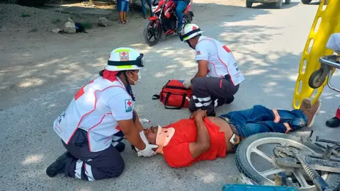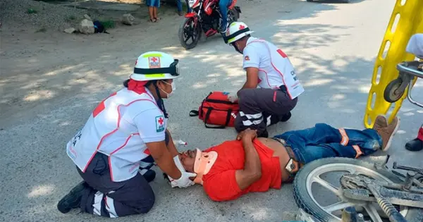 El accidente fue reportado al Sistema de Emergencias 911 y minutos después arribaron paramédicos de la Cruz Roja, quienes le brindaron atención al motociclista, por las lesiones sufridas.