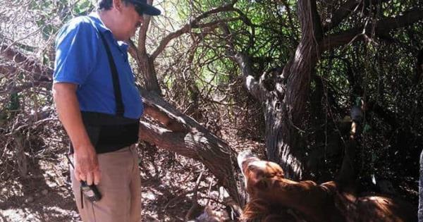 El director de Protección Civil, Gabriel Santillán explicó que se recibió un reporte acerca de que había un equino atorado entre uno de los mezquites del Barrio del Ferrocarril.