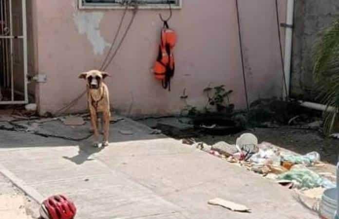 Uno de los inquilinos de las casas de la calle Dakota, en el fraccionamiento Villa Brisa se fue de la vivienda, dejando amarrados a dos perros, un adulto de buena talla, en el patio que da a la calle y un cachorro en el área trasera de la casa, quienes casi mueren de hambre.