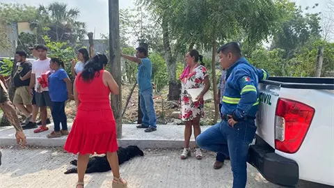 CIUDAD VALLES.- Un perro mordió a dos niños en un corto lapso de tiempo, los trabajadores de Protección Civil, un civil y otro de la Policía sometieron al animal que murió debido a los forcejeos. El dueño del can enfrentará a la justicia por irresponsabilidad en el cuidado del animal y por las heridas que éste provocó.
