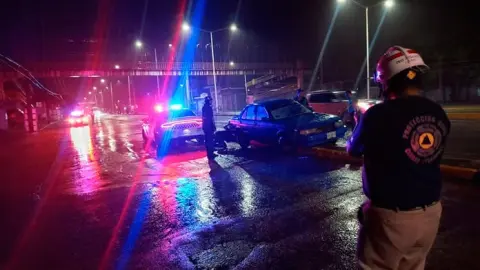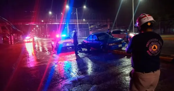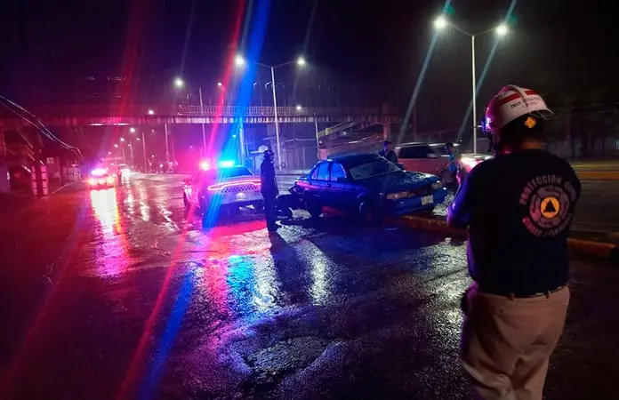 Paramédicos de Protección Civil dieron a conocer que recibieron una llamada de auxilio, por lo que de inmediato acudieron a brindar atención médica a una persona del sexo femenino de 23 años de edad y un infante de 8 meses, que resultaron con lesiones leves en el accidente, cuando derrapó la unidad motriz, quedando tirados bajo el puente elevado y atorados sobre el camellón.