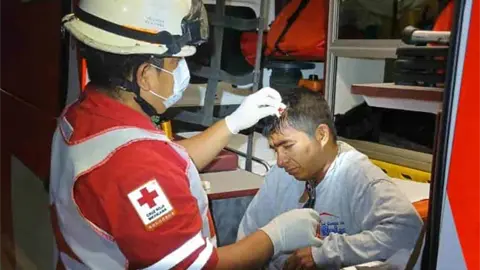 La noche del sábado, los paramédicos de la Cruz Roja auxiliaron a un hombre que se encontraba herido, en la calle Santa Rosa, cerca del puente del mismo nombre.