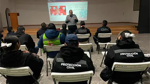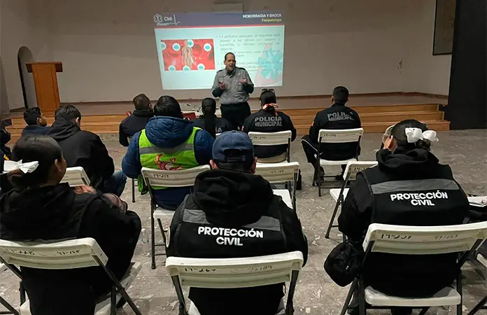 Elementos del Cuerpo de bomberos, Cruz Roja y Protección Civil acudieron al curso impartido por el instructor Luis Guillermo Nervaed Aranda de la empresa Entrenamiento Profesional a Brigadas en coordinación con el CMI.