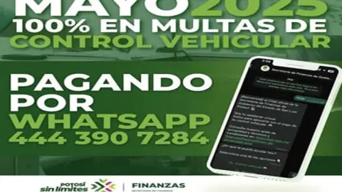 CIUDAD VALLES.- A través de un número de contacto de WhatsApp, la Secretaría de Finanzas (Sefin) ofrece la condonación del 100 por ciento de multas y recargos en el pago del engomado 2025 y años anteriores.