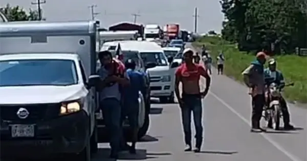 CIUDAD VALLES.- Un operativo y movilización policiaca bloqueó la carretera a Tampico, causando un embotellamiento de kilómetros, a la altura de Cacalilao, generando consigo las quejas y protestas de los conductores de unidades motrices que quedaron varadas.