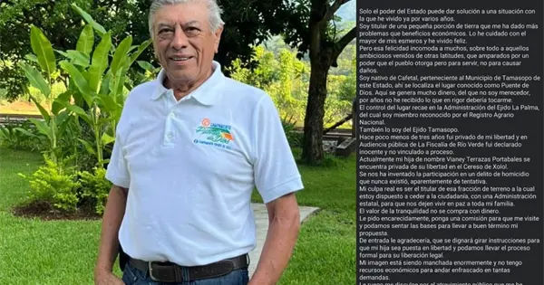Asegura que es inocente y ofrece sus tierras para lograr su liberación