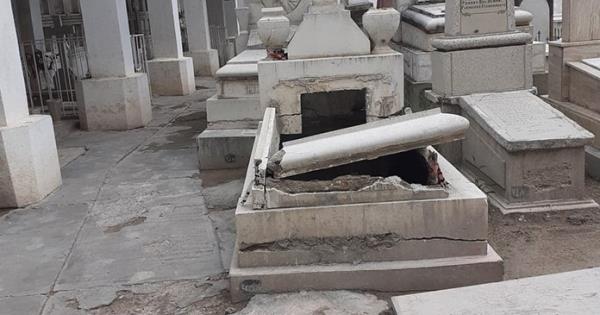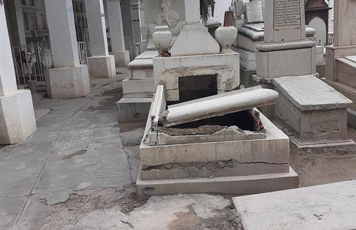 Las primeras tumbas del panteón Miguel Hidalgo están a la entrada, algunas de ellas ya tienen un severo deterioro porque se han hundido y representan un riesgo para todos.