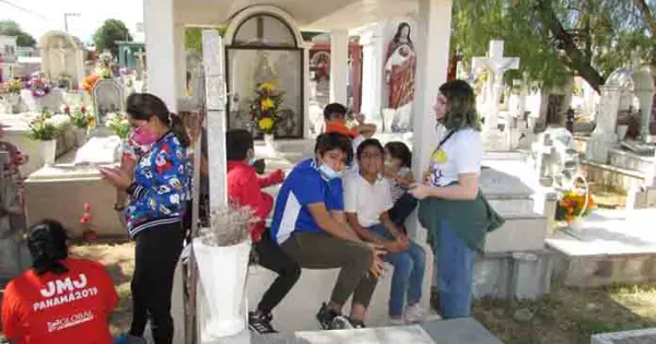 Al recorrer el Panteón Hidalgo se pudo observar que varios papás fueron a visitar las tumbas de sus hijos, les dejaron flores y globos eran tumbas de niños recién nacidos, así como sepulturas de niños de distintas edades, también hubo quién les llevaba un juguete y los colocaba arriba de la sepultura de los chiquitines, para que su espíritu venga a jugar con ellos.