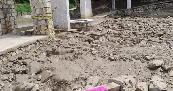 Justo como sucedió el año pasado, el parque Colosio fue erosionado hasta su base de piedras por la corriente sin cesar de casi dos semanas de la creciente del Valles, por las lluvias del flujo de humedad que tapó el cielo de esta localidad durante días y días.