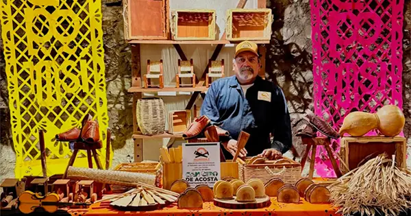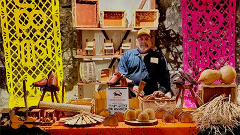 El artesano Rosalío Villanueva se trasladó a Guanajuato para participar en la exposición de piezas artesanales que se realiza del 8 al 16 de enero, donde participan artesanos de otras entidades del país.