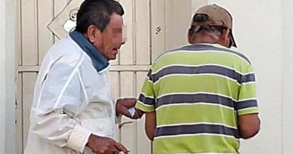 El hombre de la imagen en camisa blanca ofreció darle un cheque al de edad más avanzada, a cambio de una cantidad menor de dinero en efectivo.
