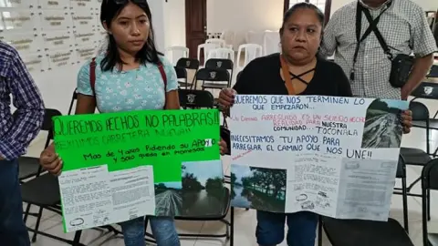 Ellos subieron al salón de Cabildo, ante el secretario del Ayuntamiento Luis Ángel Contreras Malibrán y el coordinador de Desarrollo Social, Roberto Reséndiz Galván quienes sólo acertaron a decir que estarán al pendiente de alguna solución pronta sobre el problema, a pesar de que algunos de los visitantes habían pegado oficios de éste y del año pasado en cartulinas donde se leían consignas.