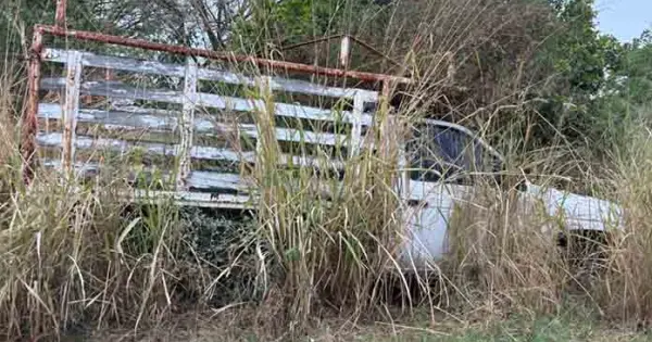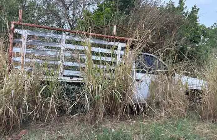 CIUDAD VALLES.- ¿Y el programa de recoger carros chatarra? En la Real Campestre, vehículos abandonados se confunden con la hierba alta.