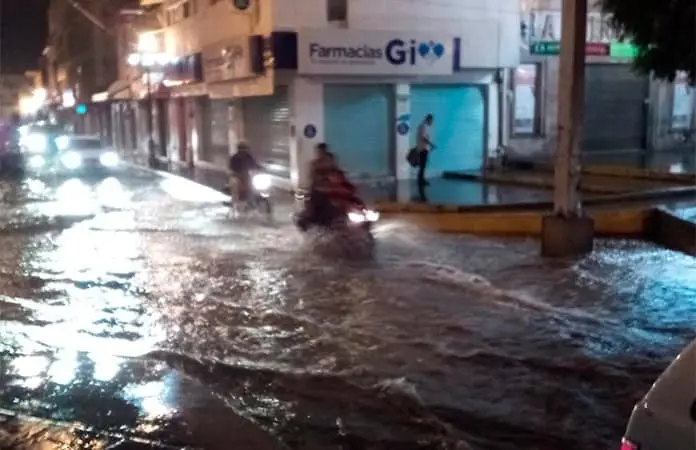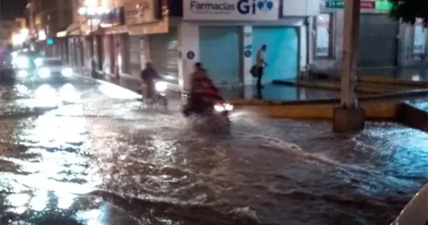 Primero, una mujer que viajaba en su motocicleta con sus dos hijos, en el momento que arreció la tormenta y debido a la lluvia, la motocicleta ya no encendía y quedó atorada a media calle en la zona centro.