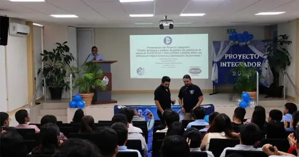 Matehuala.- Estudiantes del Tecnológico de Matehuala presentaron el proyecto integrador titulado “Diseño del layout y sistema de gestión de calidad en la planta de plásticos y dulcerías con enfoque en mejora continua y optimización de procesos”, ante la presencia de los gerentes de la empresa, directivos y docentes de la institución.