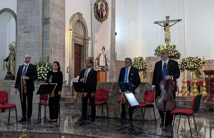 Matehuala.- Se celebró un concierto de música sacra en la Catedral que presentó el Ensamble de Camerata, hubo una excelente respuesta por parte de los ciudadanos que acudieron pues el templo lució un lleno total.