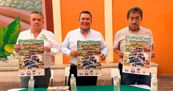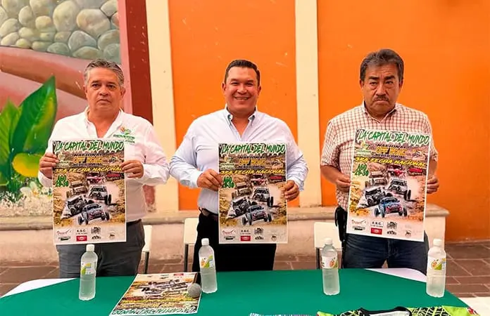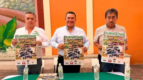 En conferencia de prensa Arturo César Ibarra, el alcalde Arnulfo Urbiola Román y el director de Turismo José Fernando Tenorio Govea, dieron a conocer el evento nacional de Off Road México Racing 2025.