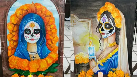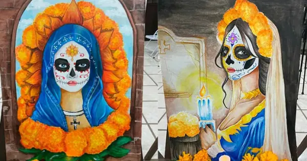 Esta es una manera para honrar tanto la vida y la muerte, en cada pintura se puede ver un catrín o una catrina así como la tradicional flor de cempasúchil.
