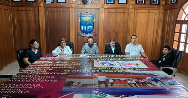En conferencia de prensa autoridades municipales Jorge Alberto López Ríos Homero, Benjamín Hambacuan Ríos y el taekwondoin Kevin García Álvarez, dieron a conocer los pormenores del torneo deportivo.